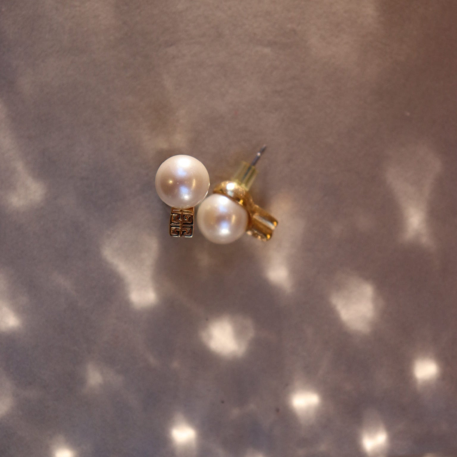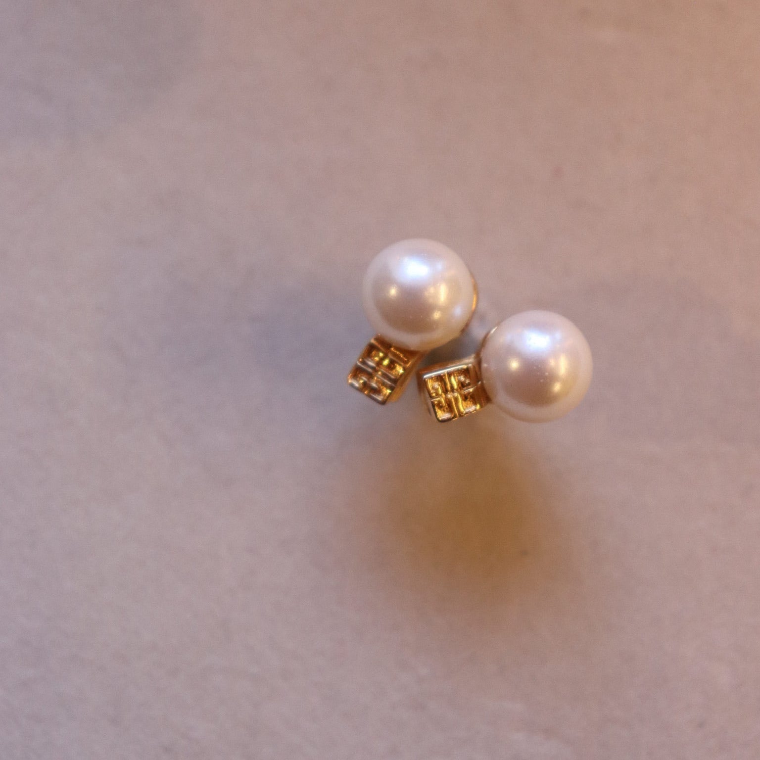 Vintage Oval Pearl Earring with Black Enamel Drop