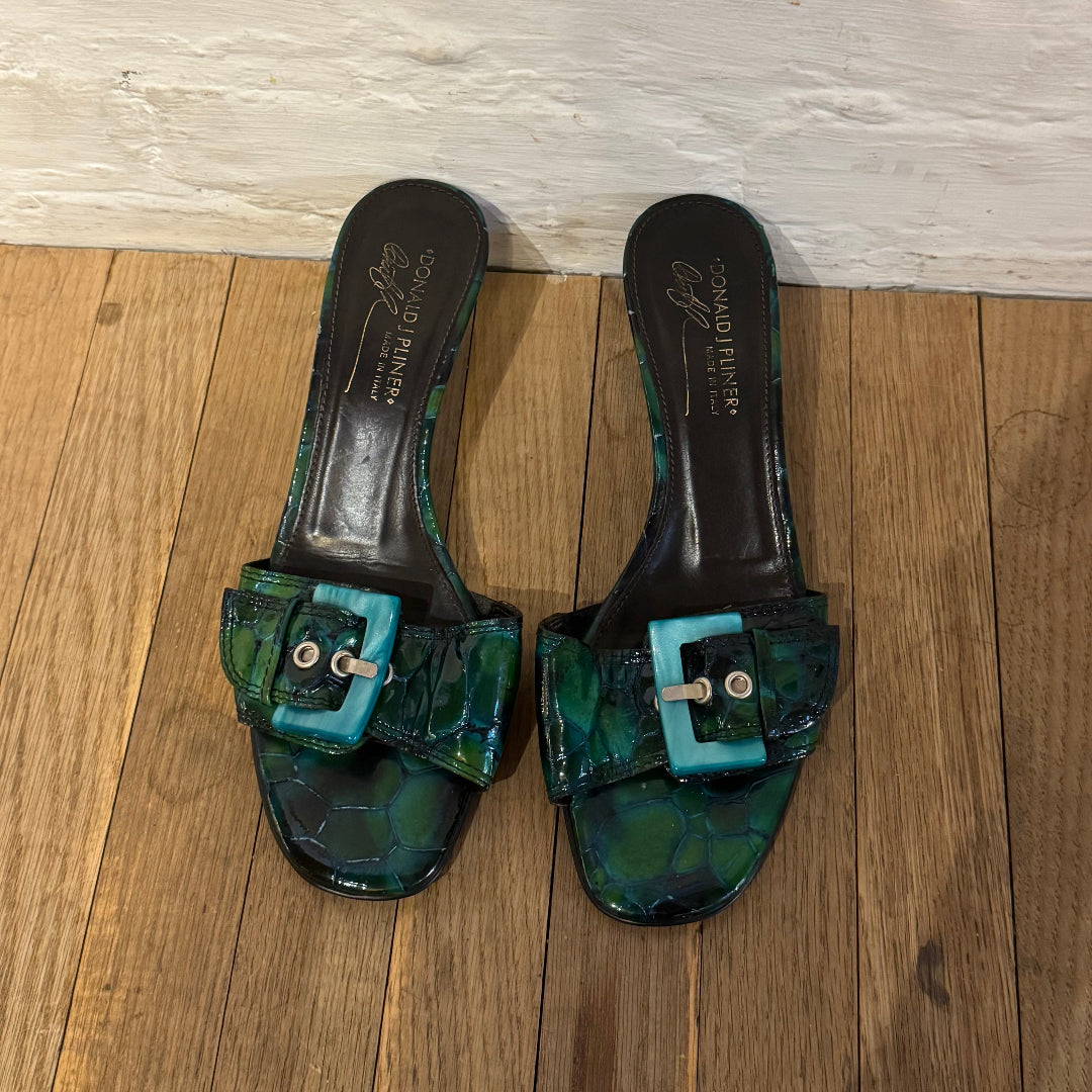 Vintage Donald Pliner Green Croc Buckle Kitten Heels