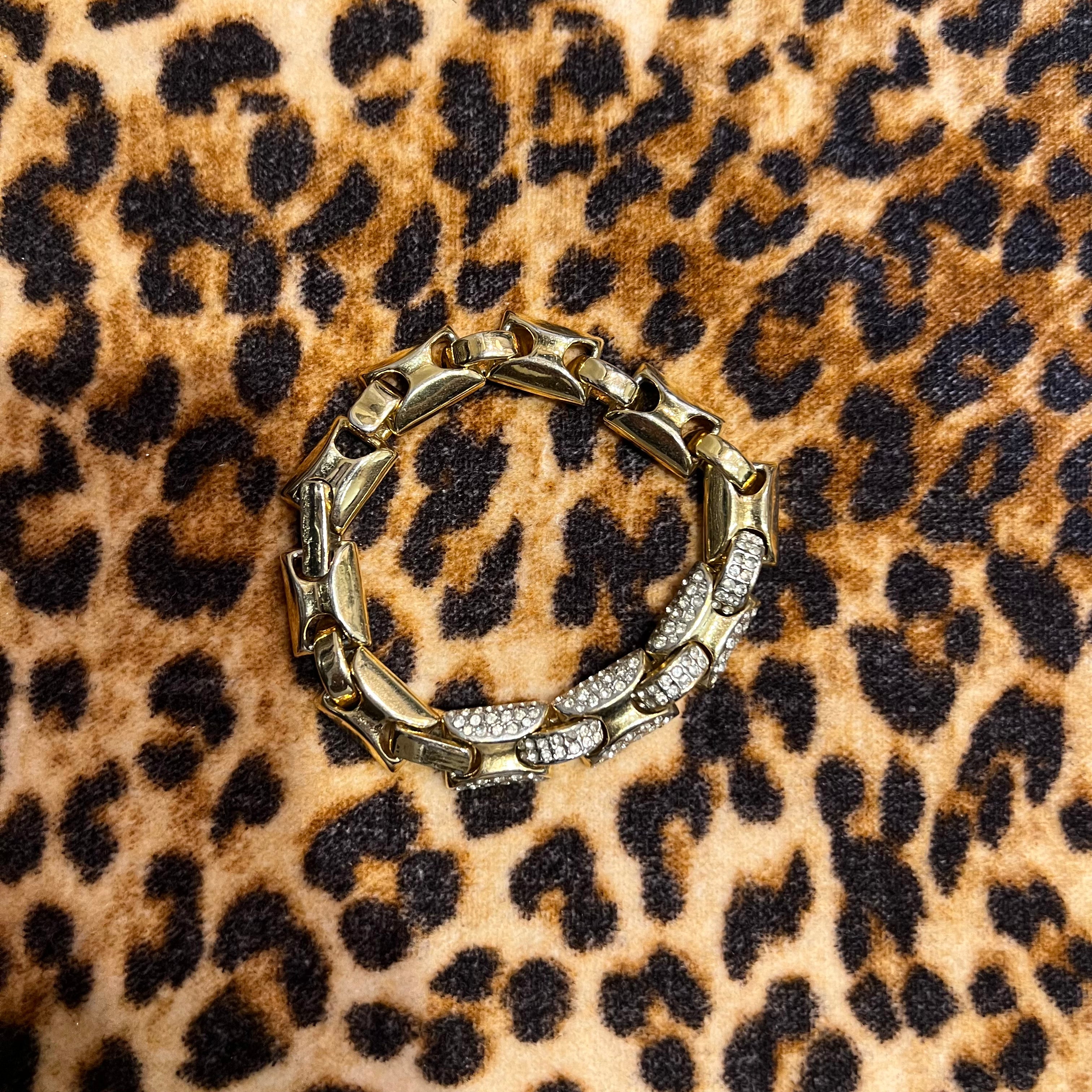 Vintage Goldtone Chain Link Bracelet with Rhinestones