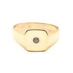 This is Taylor, wearing our ASHER signet ring in Yellow Brass set with a Black Diamond, which gives the perfect balance of classic and new.