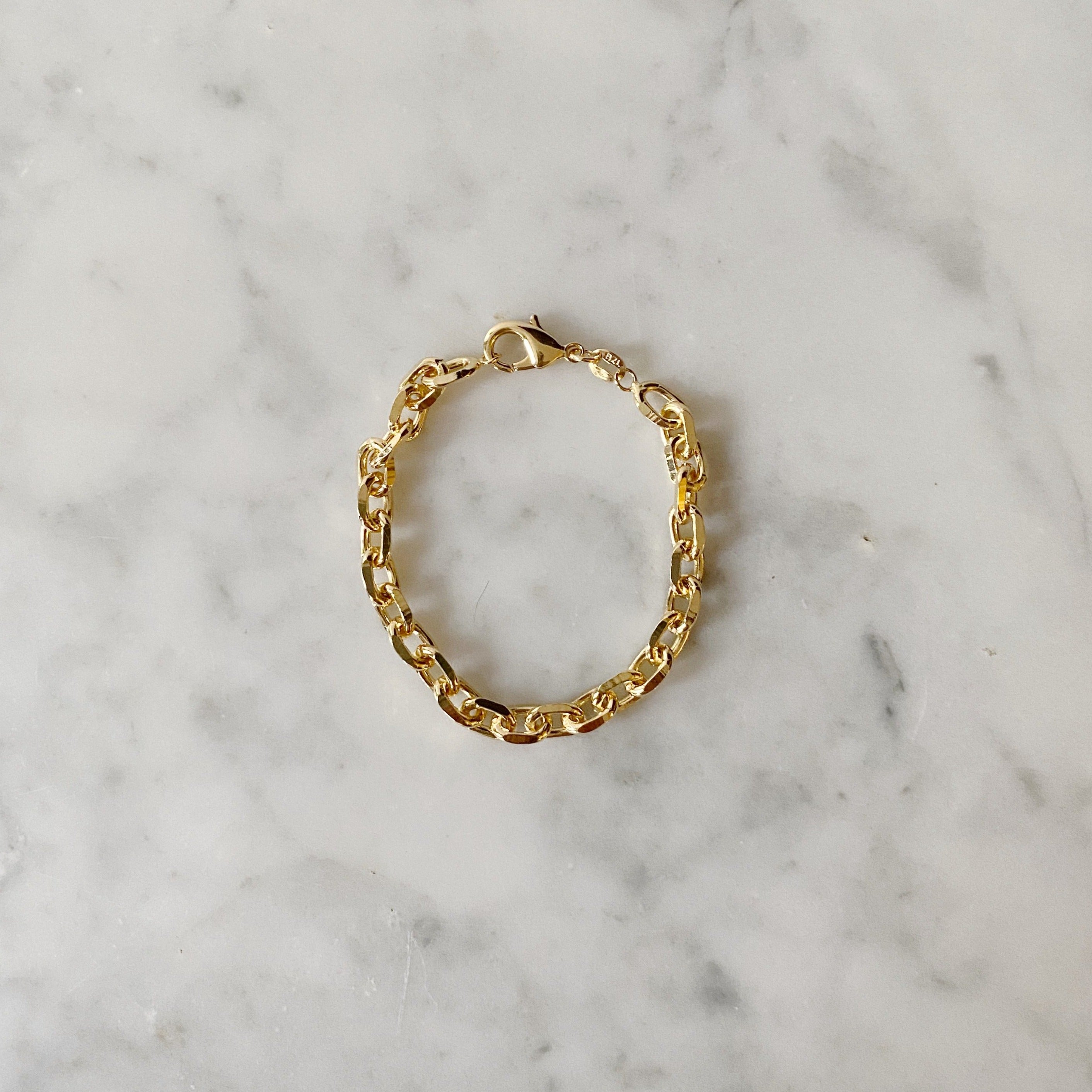 The chain link bracelet your sister will try to steal and the one that your BFF will buy after seeing you wear it, the Bank Bracelet is sophistication and style in one. This statement piece will look incredible on its own or paired with our other gold bracelets.