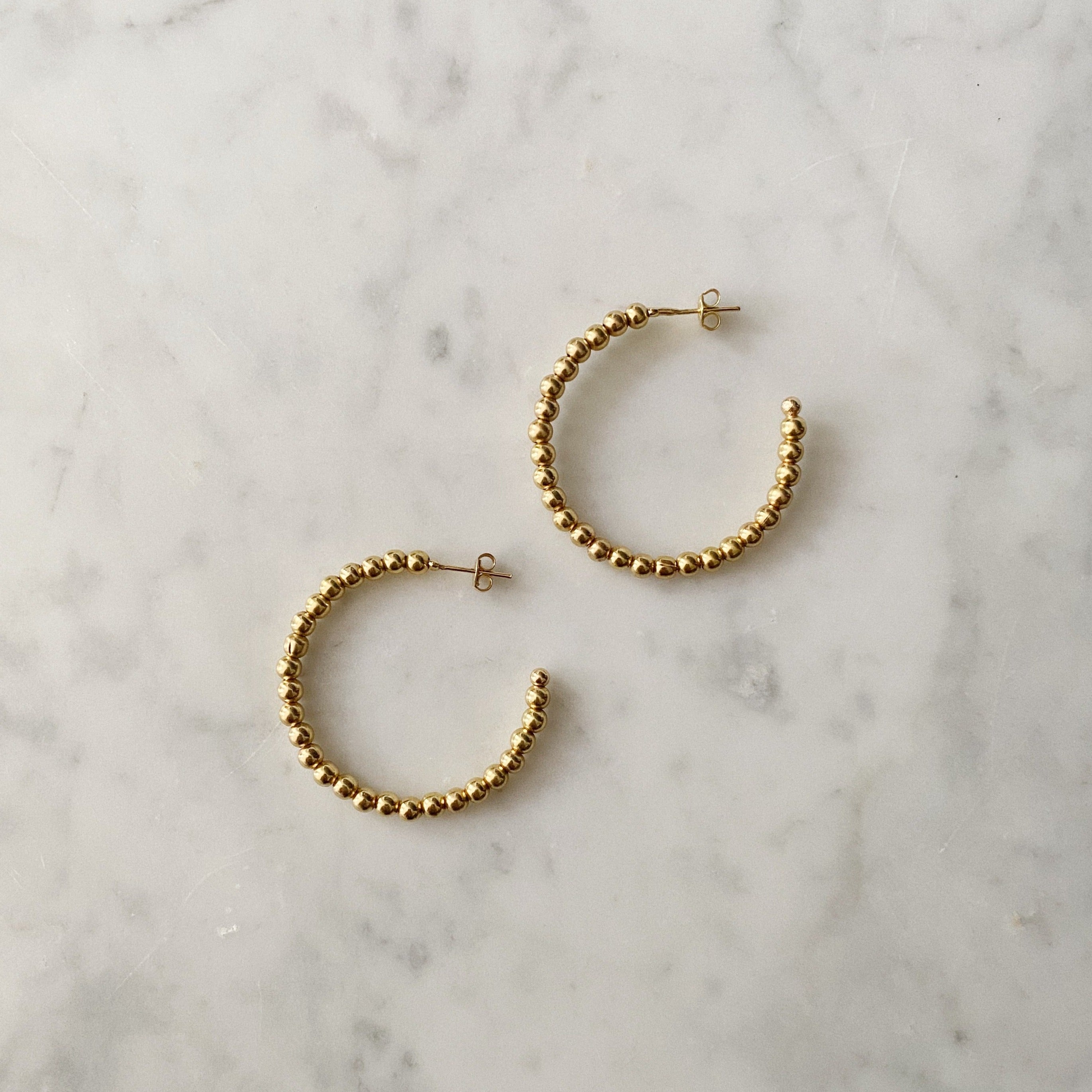 The Cornelia Gold Ball Hoop Earrings features endless hollow Gold Spheres, which give it a playful geometric design as compared to our classic gold hoops. If you're looking for a hoop lightweight enough to wear every.single.day, look no further.