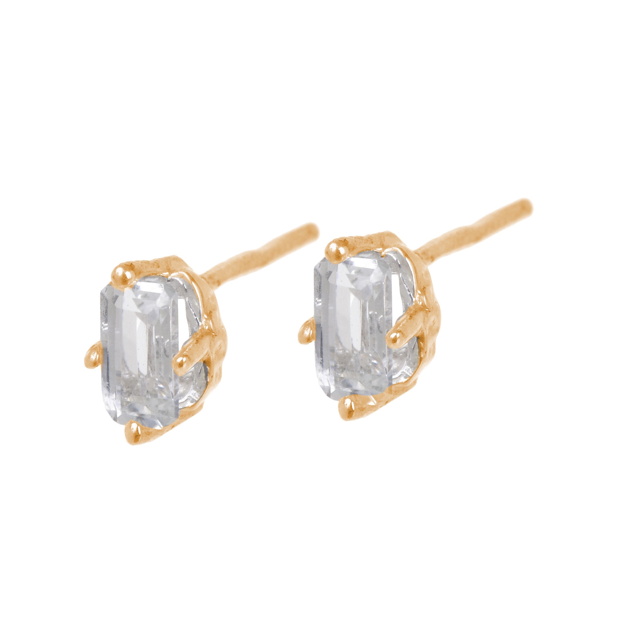 Cast in an unusual 4 prong setting, our Jordan earrings features a radiant White Topaz Gemstone, ideal for any look.