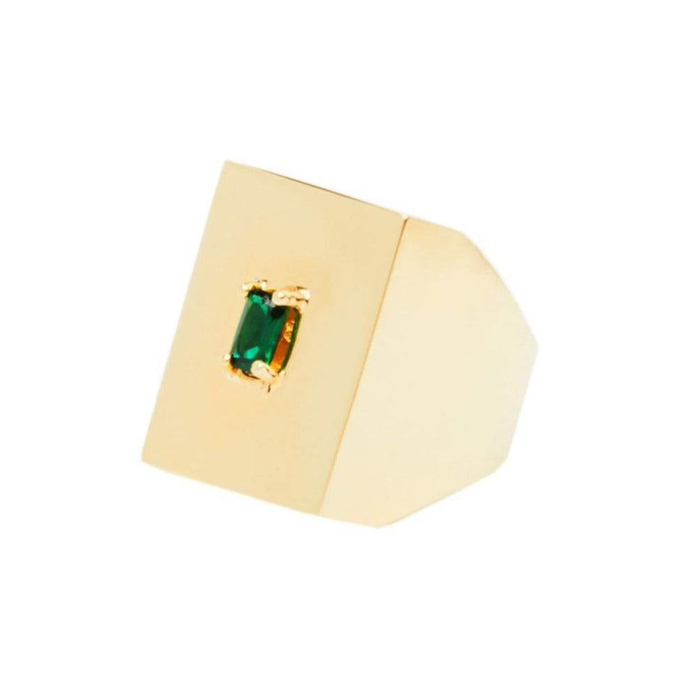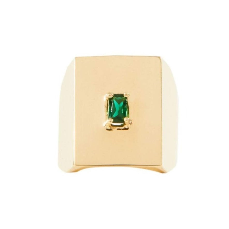 Adorned with a 3 x 5 mm Emerald Cut Green Quartz Gemstone, the 'Jordie' is our rectangular shaped signet ring that adds an essence of contemporariness. Made in Sterling Silver or Yellow Brass, this ring can be worn everyday with style and ease. Contact us here for custom sizing!