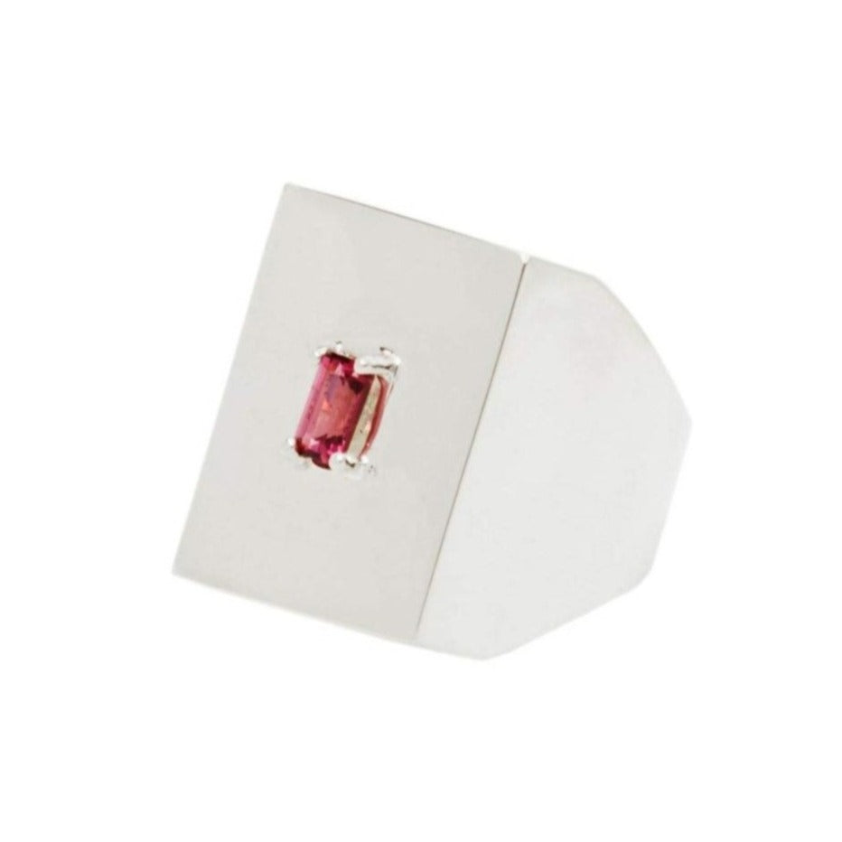 Adorned with a 3 x 5 mm Emerald Cut Rhodolite Gemstone, the 'Jordie' is our rectangular shaped signet ring that adds an essence of contemporariness. Made in Sterling Silver or Yellow Brass, this ring can be worn everyday with style and ease. Contact us here for custom sizing!