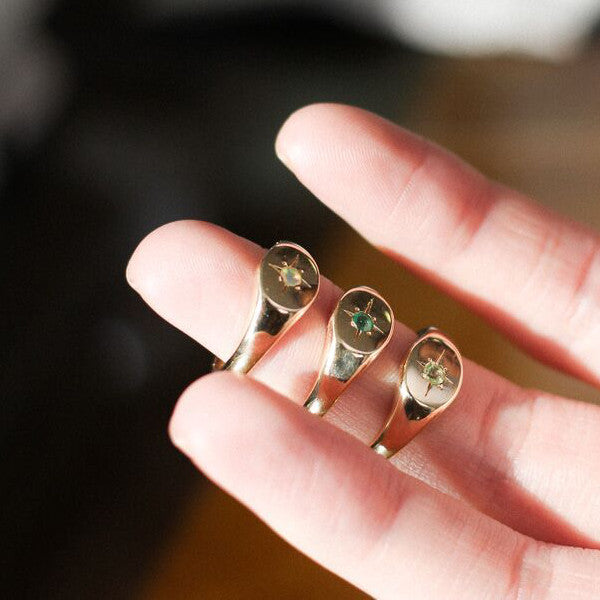 -Starburst design around the Gemstone on the oval faced Signet Ring