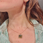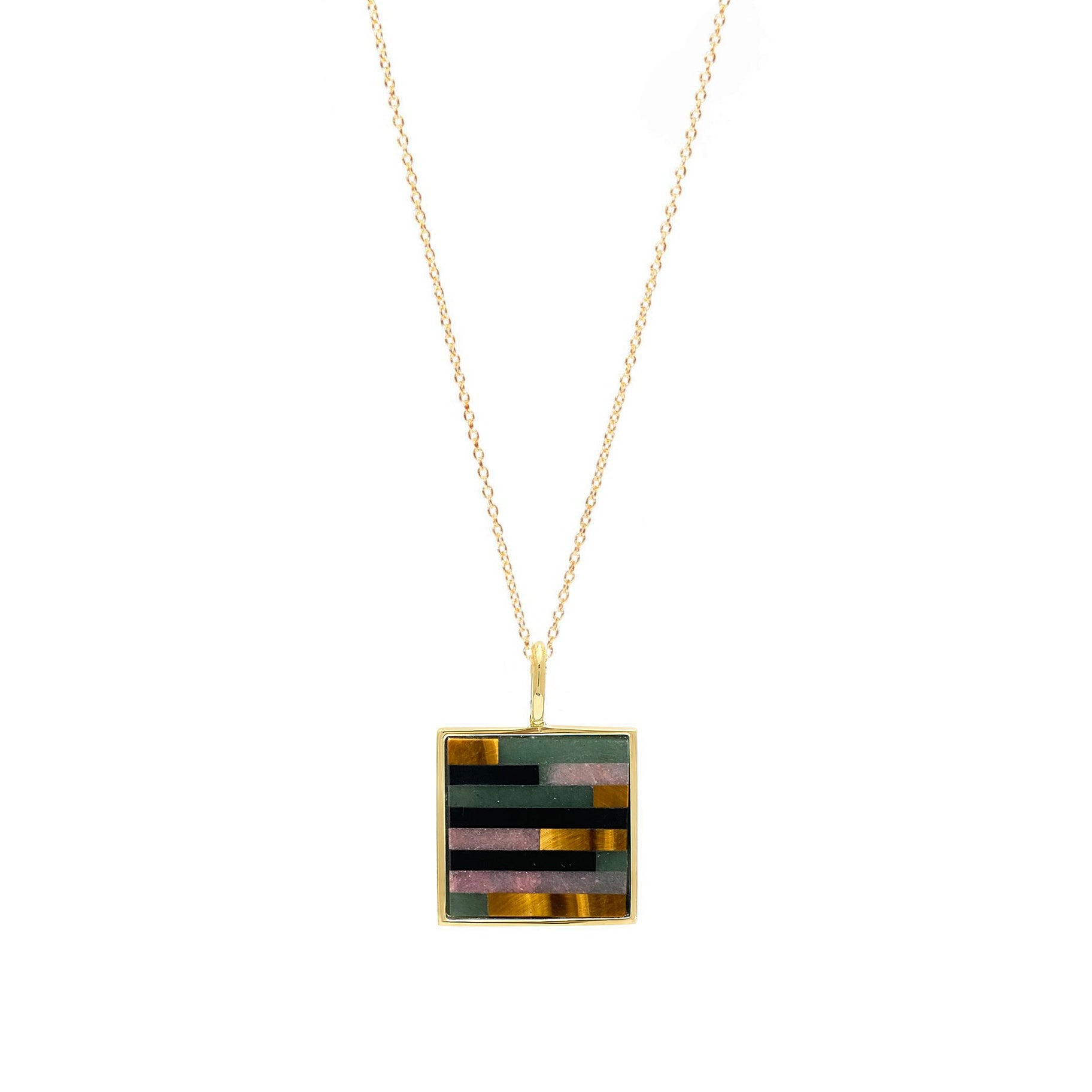 This Samuel stone is truely unique featuring a striped pattern with Black Onyx, Tigers Eye, Aventurine, Rhodolite that showcases the best abstract sunset you have ever seen. The 'Samuel' necklace combines practicality, edge and is a go-to piece with endless wearability.