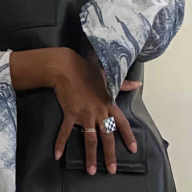 This is our 'Samuel' ring from our Flat Top Checkered Thomas collection. With its flat, square face adorned with a 16 x 16 mm Black Onyx and White Mother of Pearl checkered pattern. This 'Samuel' ring combines old world charm and modern edge. This unisex signet ring is a go-to piece with endless wearability.