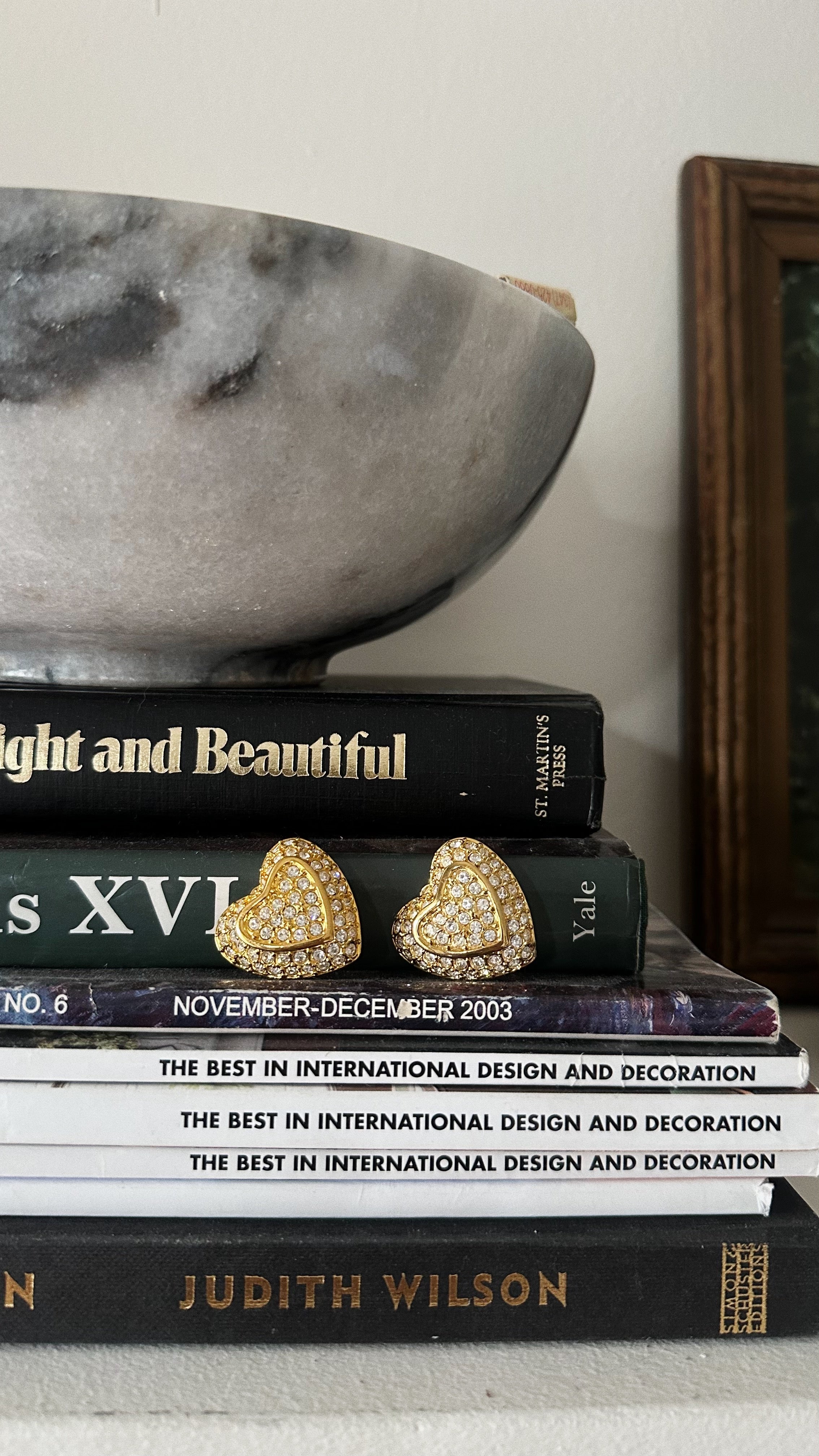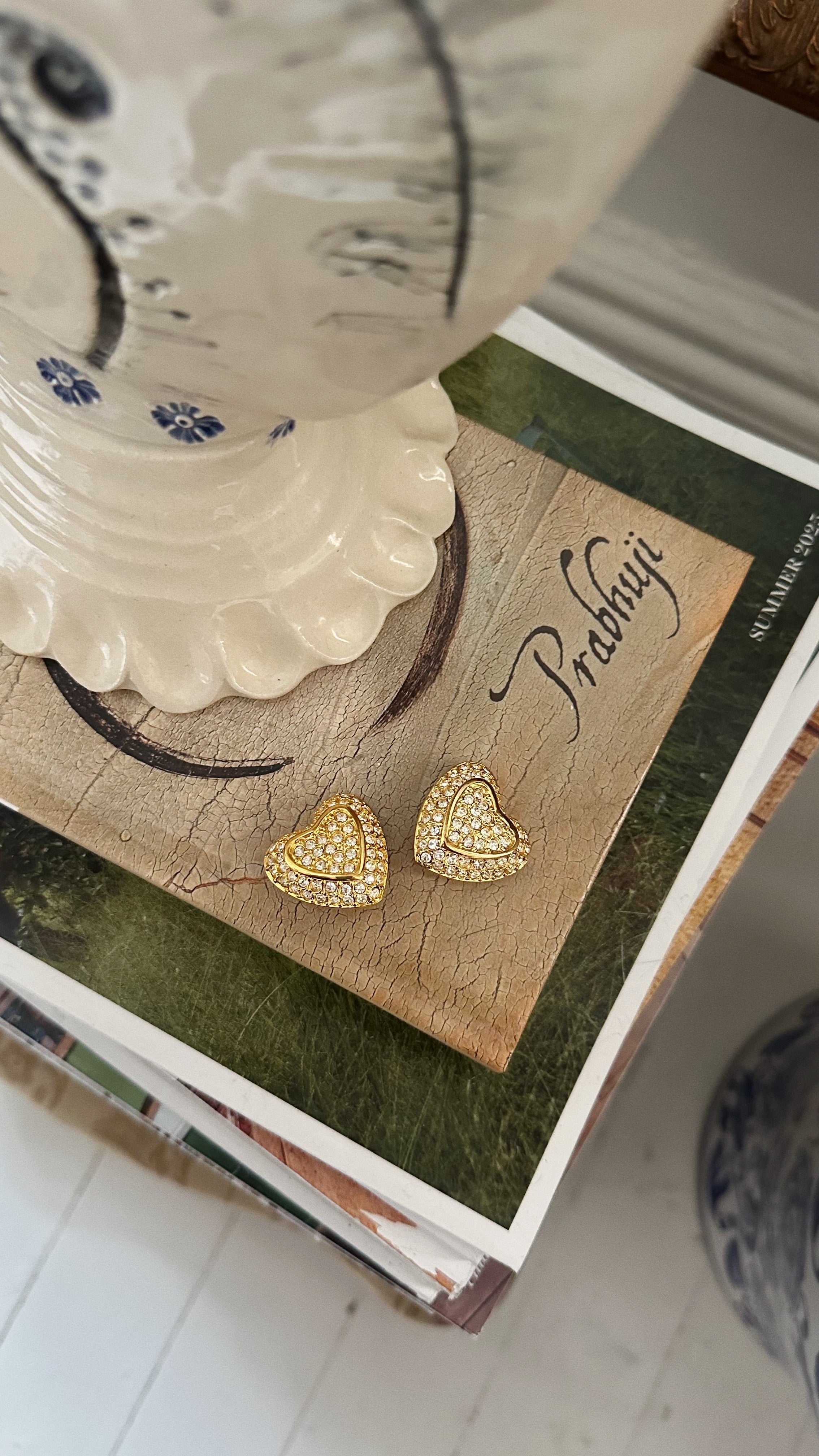 Gold tone frames crystal pavé in this Escada design. A subtle nod to love combined with sculptural artistry for contemporary wear.