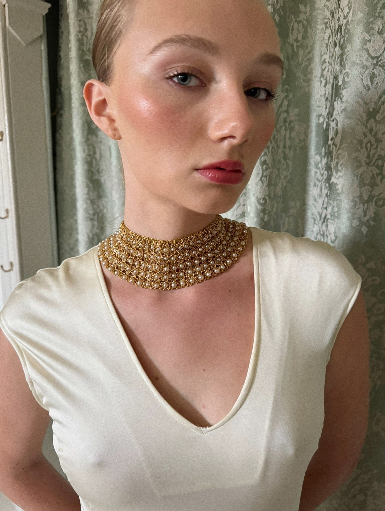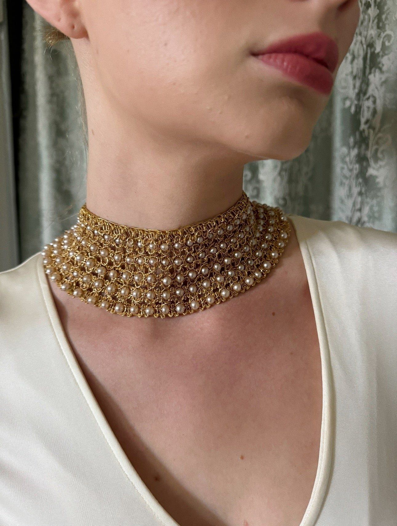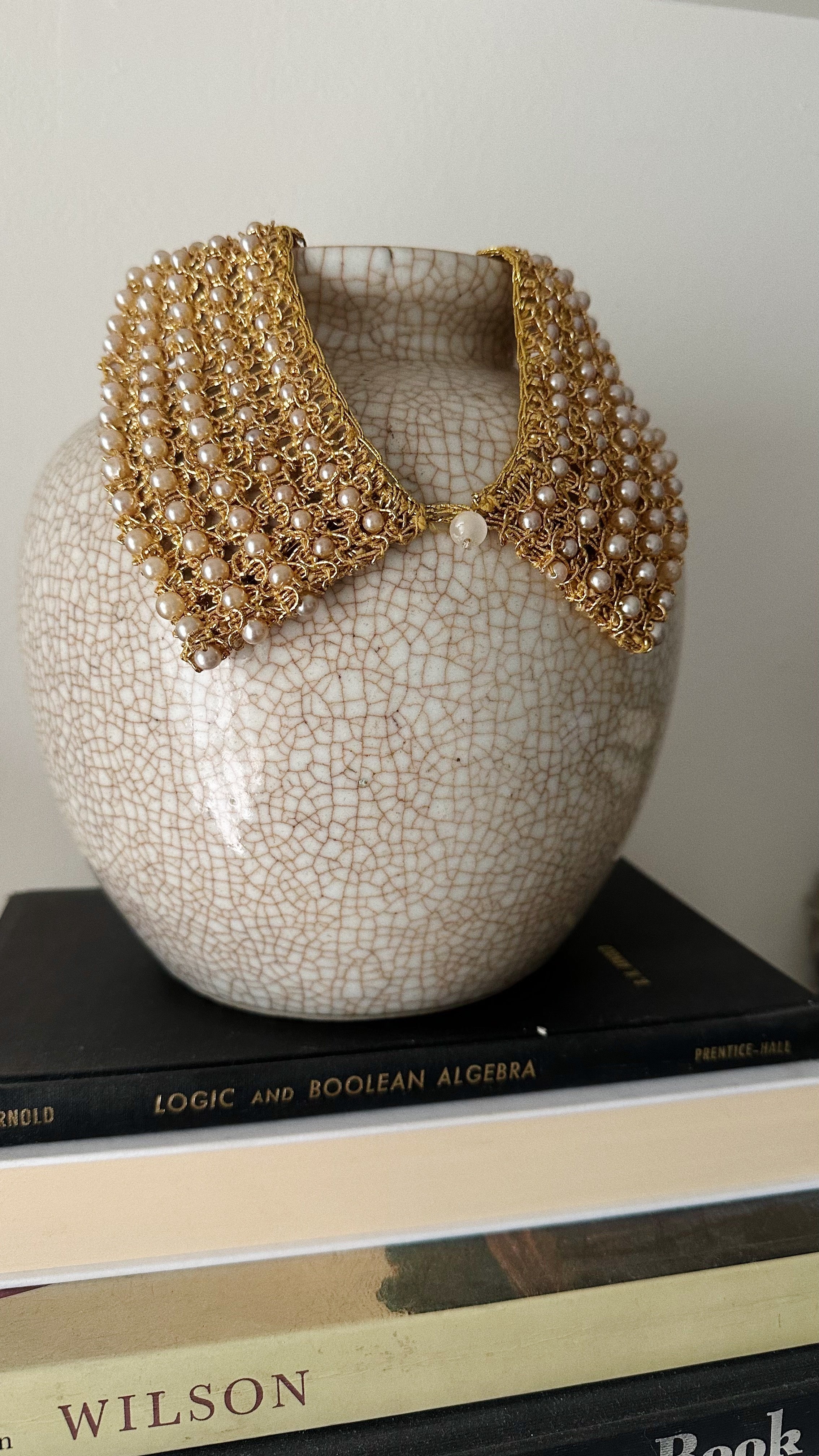 Vintage Handwoven Pearl Bib Necklace