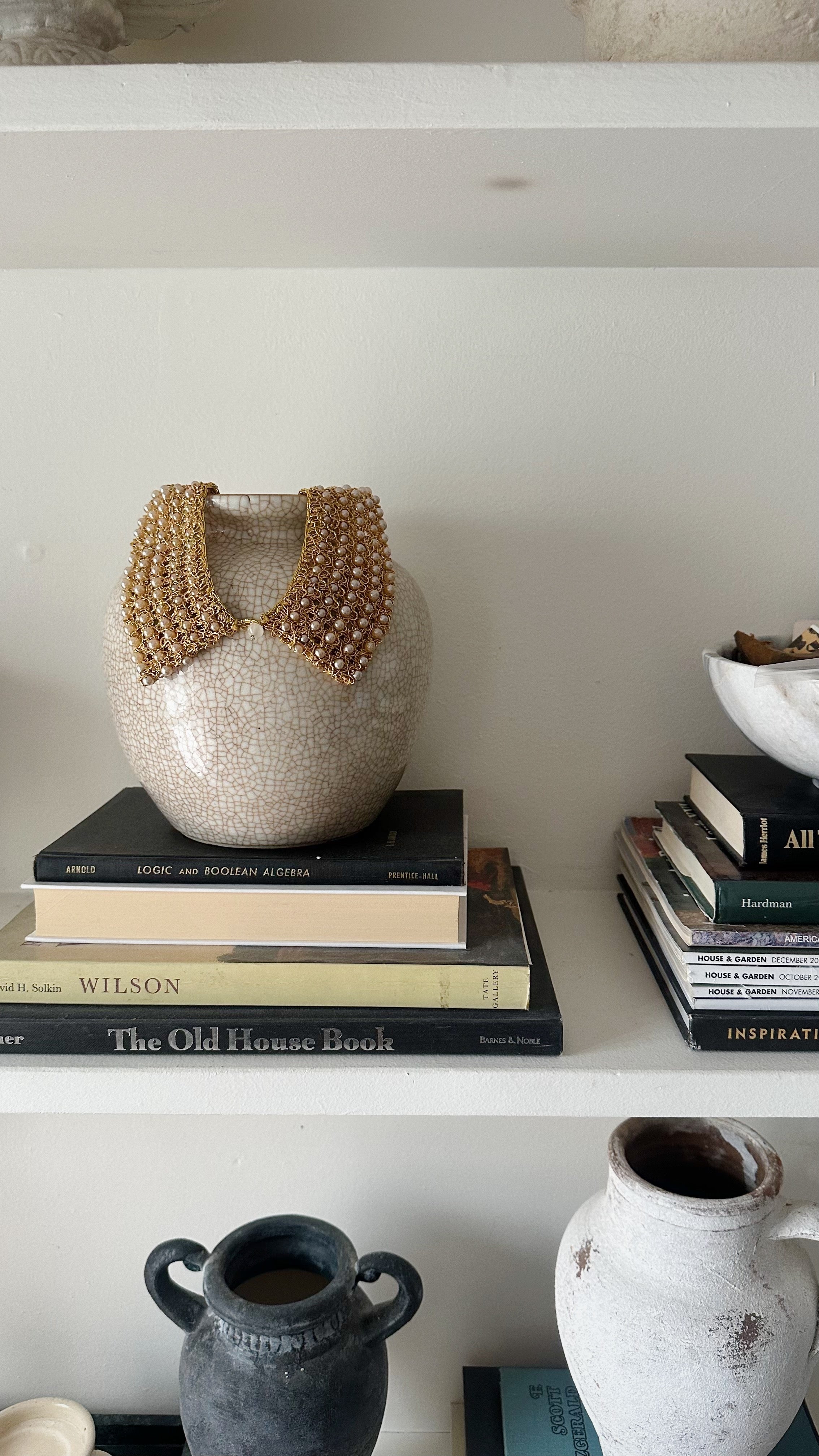 Hundreds of hand-strung pearls create sculptural texture in this woven bib necklace. Elevated and effortless, it’s made for the moments that call for presence.