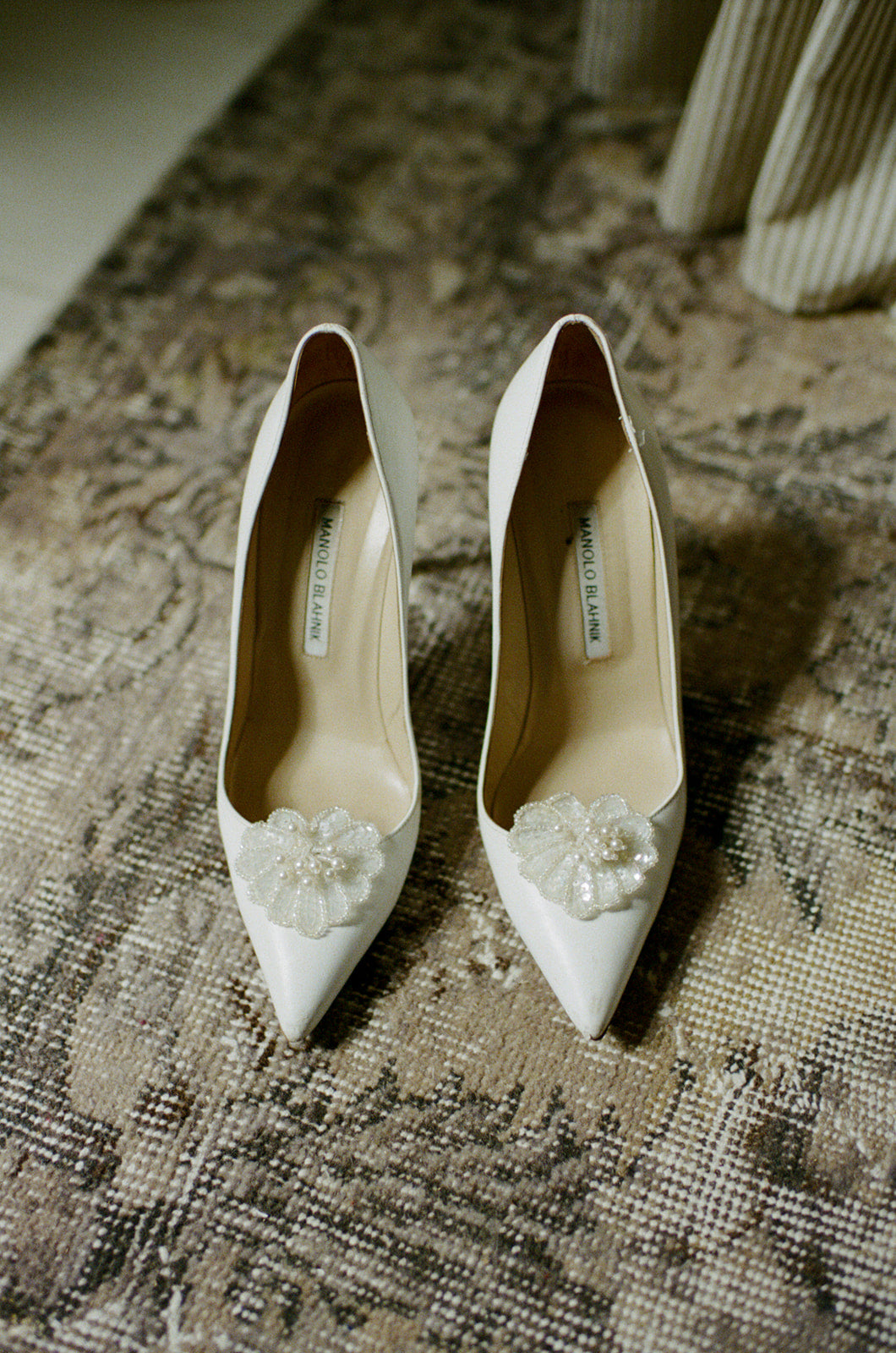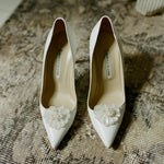 These beaded shoe clips add a delicate radiance to any silhouette. Crafted with sequins and pearls, they bring texture and light to every step.