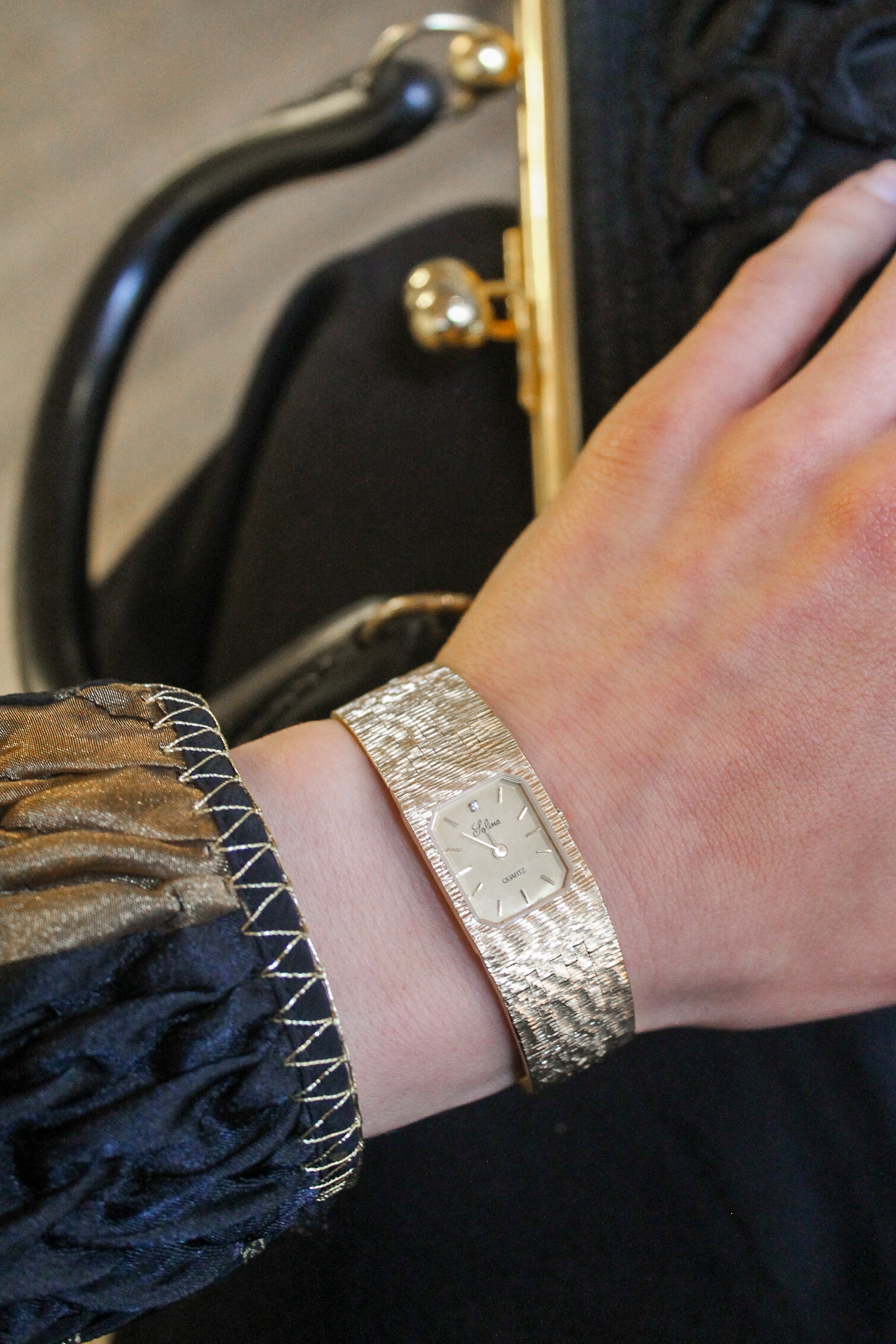 Vintage Solina Gold Tone Nugget Square Face Watch