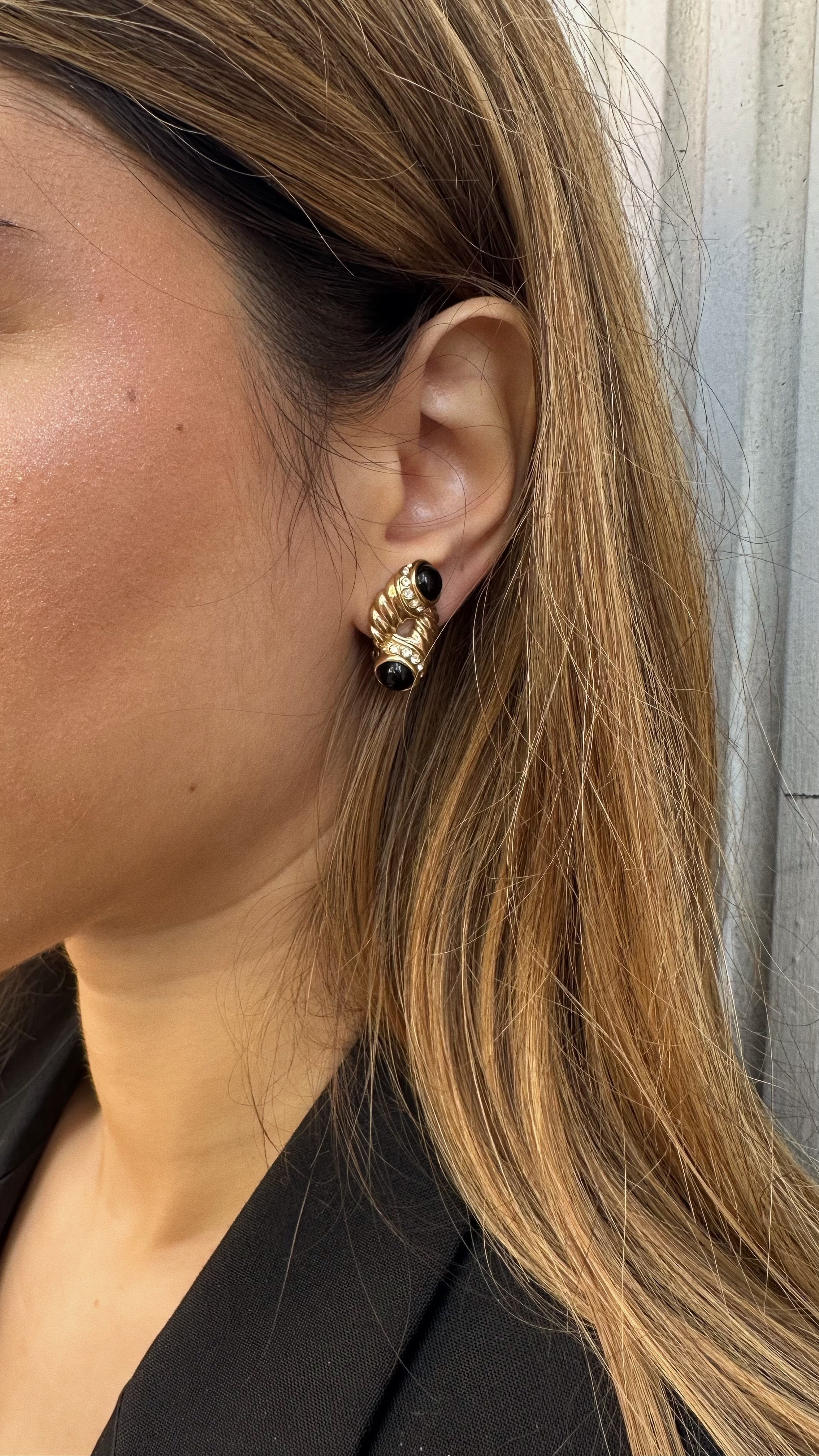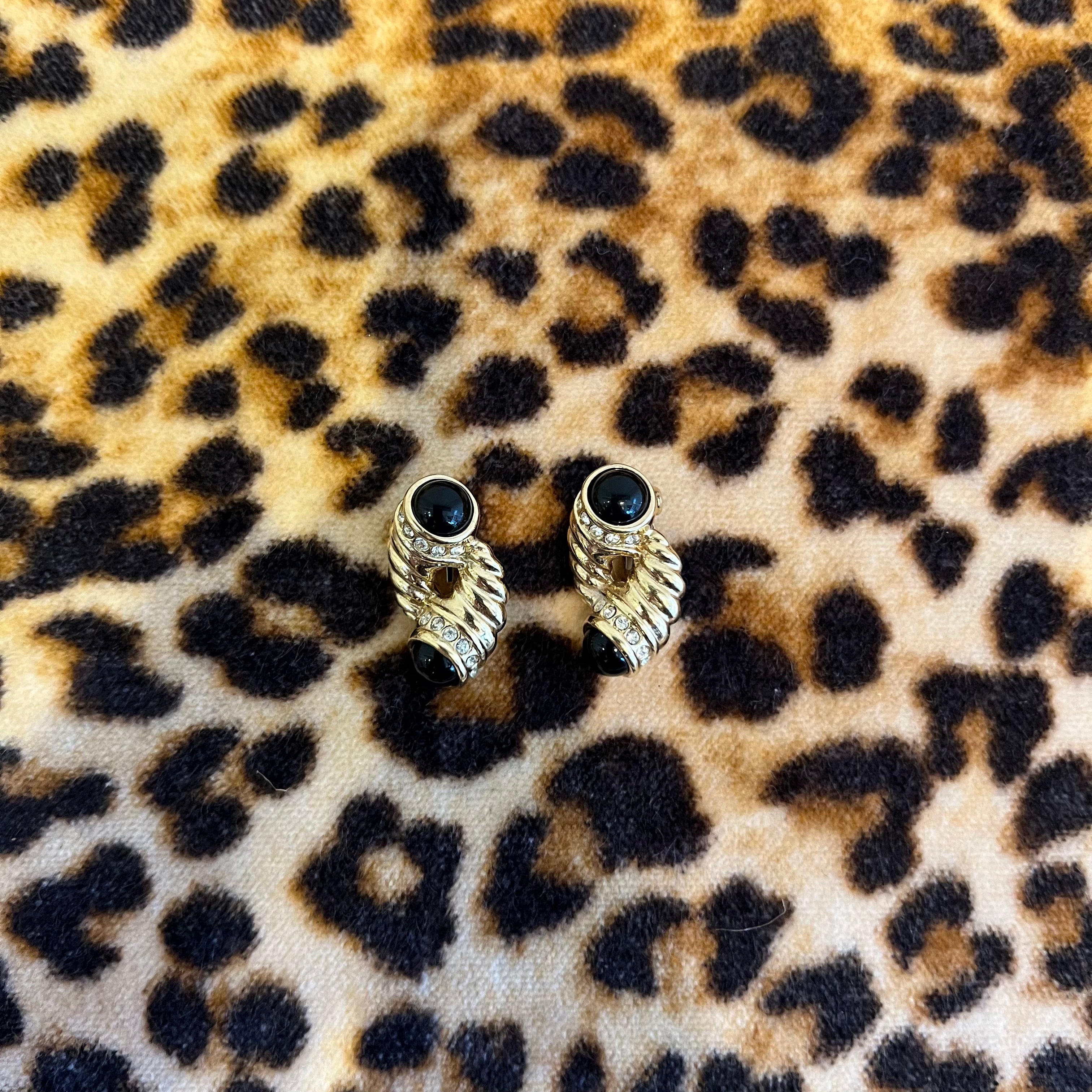 Vintage Twisted Rope Earrings with Black Cabs and Rhinestones